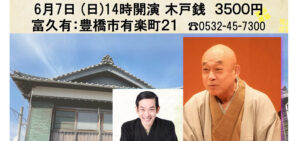 2025年4月11日旭堂鱗林講談会 2026年2月18日 イベント お知らせ 講談VS太神楽&落語 4月11日14時開演(13時半開場)木戸銭2,500円大須演芸場で活躍中の旭堂鱗林さんの講談と豊橋落語天狗連の弾家喜苦の太神楽と六ツ家千艘の落語で大爆笑間違いなし! URL Copied!