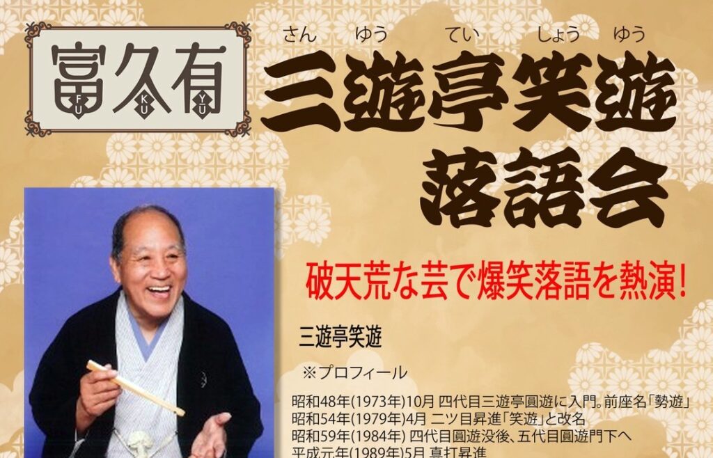 多数お問い合わせいただいております。 柳家さん生師匠の落語を風情ある富久有にてご堪能ください。